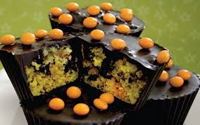 Comece preparando a casquinha de chocolate que irá envolver o cupcake revista a parte interna de uma forminha de silicone com chocolate fracionado derretido e leve à geladeira por 6 minutos para secar. Enquanto isso, esfarele os cupcakes de cenoura. Retire da geladeira e preencha a casquinha com os pedaços de bolo .Cubra-a com chocolate fracionado derretido e volte à geladeira por mais 6 minutos para secar. Desenforme e decore-o com confeitos de chocolate.